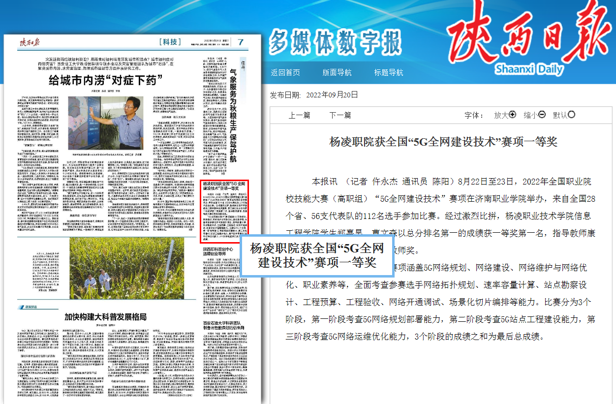【陕西省教育厅】媒体视角:陕西日报“杨凌职院获全国“5G全网建设技术”赛项一等奖”