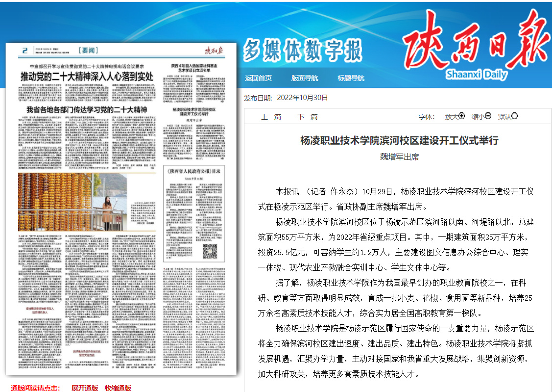 【陕西日报】杨凌职业技术学院滨河校区建设开工仪式举行