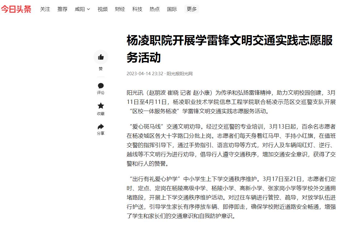 【今日头条】杨凌职院开展学雷锋文明交通实践志愿服务活动