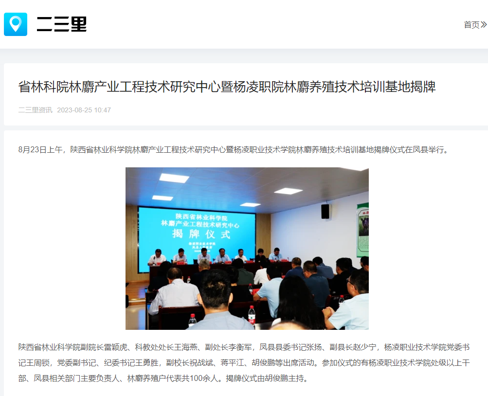 【二三里】省林科院林麝产业工程技术研究中心暨杨凌职院林麝养殖技术培训基地揭牌