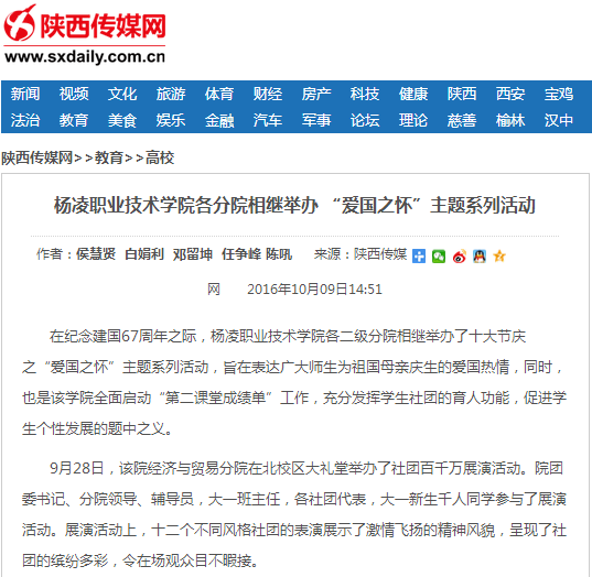 【陕西传媒网】杨凌职业技术学院各分院相继举办 “爱国之怀”主题系列活动