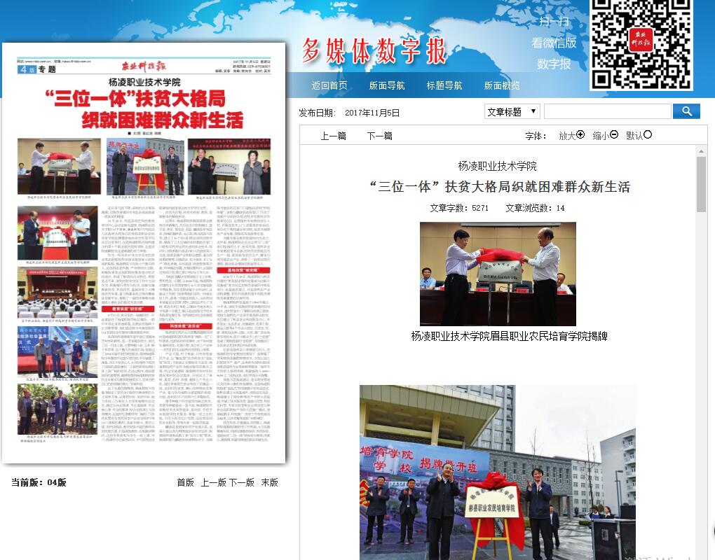 作为一所具有83年办学历史的农业类高职院校和全国首批国家示范性高职院校,杨凌职院不仅致力于教书育人,还坚持走农科教、产学研结合之路,积极探索农业高职院校服务地方经济的途径,形成了鲜明的办学特色。特别是近年来,该院在脱贫攻坚工作中主动作为,积极履行责任与担当,创新实施教育扶贫、科技扶贫、基地扶贫三大精准扶贫举措,着力构建系统立体的精准扶贫新平台,奏响了一曲同步够格全面建成小康社会的脱贫攻坚壮歌。