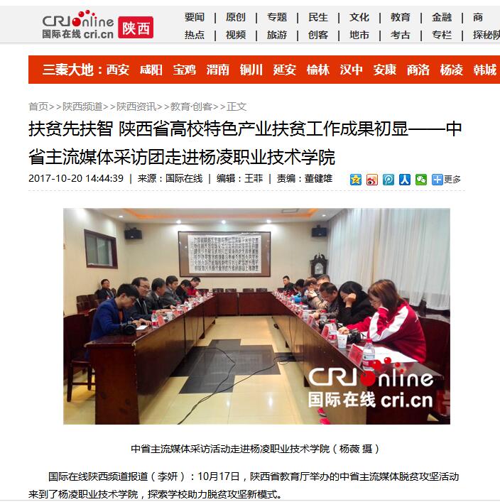 【国际在线】中省主流媒体扶贫工作采访团走进杨凌职业技术学院