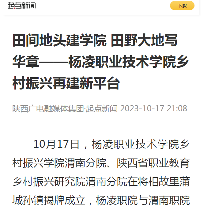 【起点新闻】田间地头建学院 田野大地写华章——杨凌职业技术学院乡村振兴再建新平台