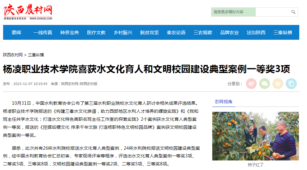 下一条:【陕西头条】全国水利职业院校水文化育人和文明校园建设典型案例评选结果公示 杨凌职院获一等奖3项