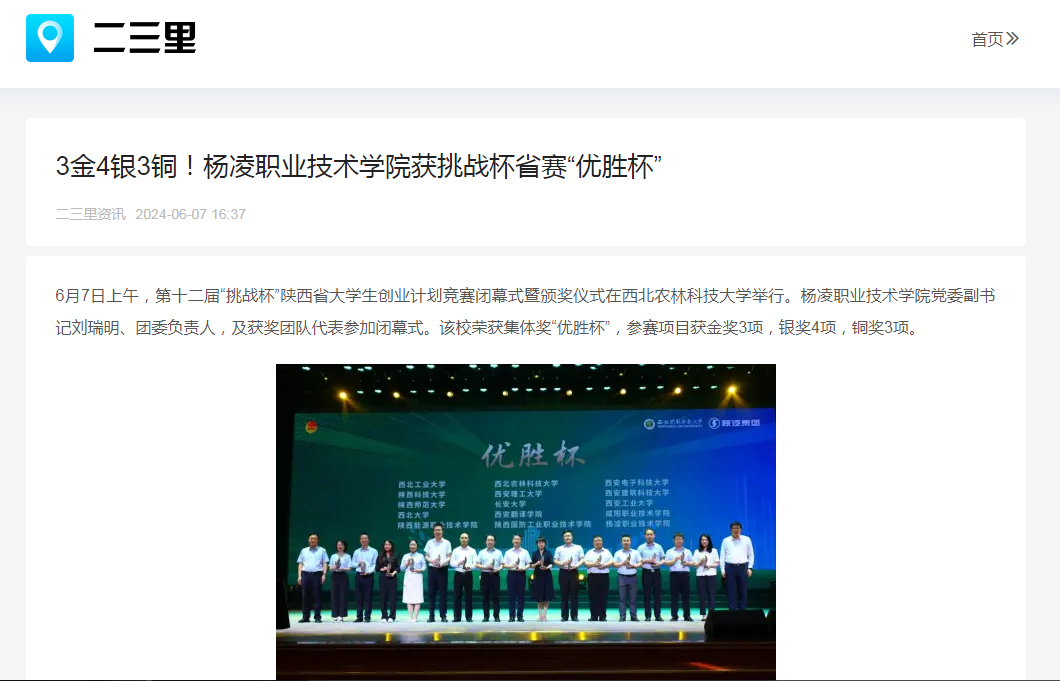 【二三里】3金4银3铜!杨凌职业技术学院获挑战杯省赛“优胜杯”