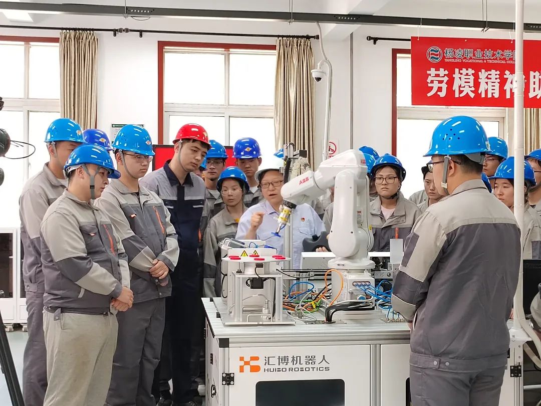 在分会场(实训指导现场),全国五一劳动奖章获得者、三秦工匠、陕西汽车控股集团有限责任公司维修电工樊凡,全国劳动模范、陕西省技术能手、国家级“杨忠州技能大师工作室”领衔人杨忠州分别走进工业机器人实训室、机床数控实训室,现场开展实训教学、绝活绝技展示、实操技术指导,面对面、手把手引导大家尊重劳动、热爱劳动,助力学生成长成才。