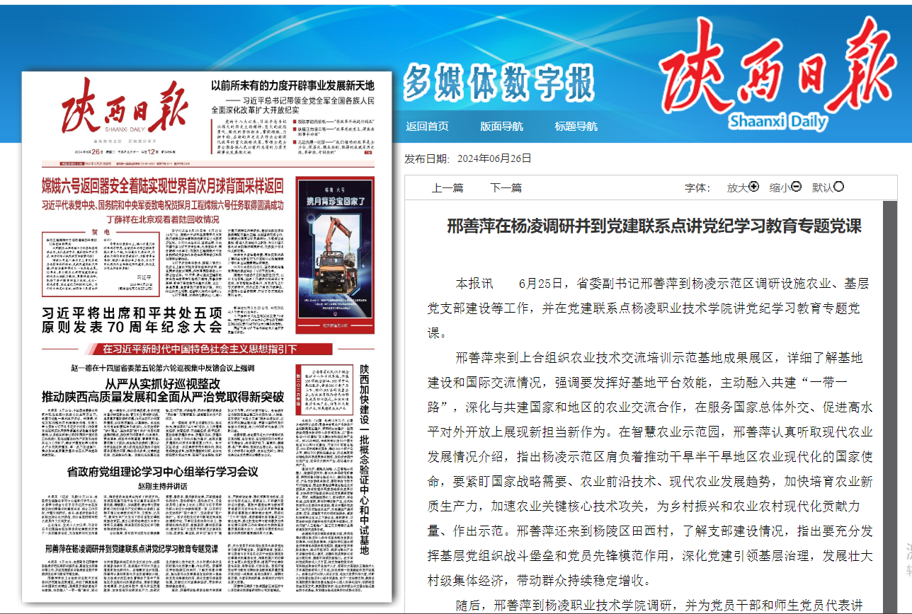 【陕西日报】邢善萍在杨凌调研并到党建联系点讲党纪学习教育专题党课