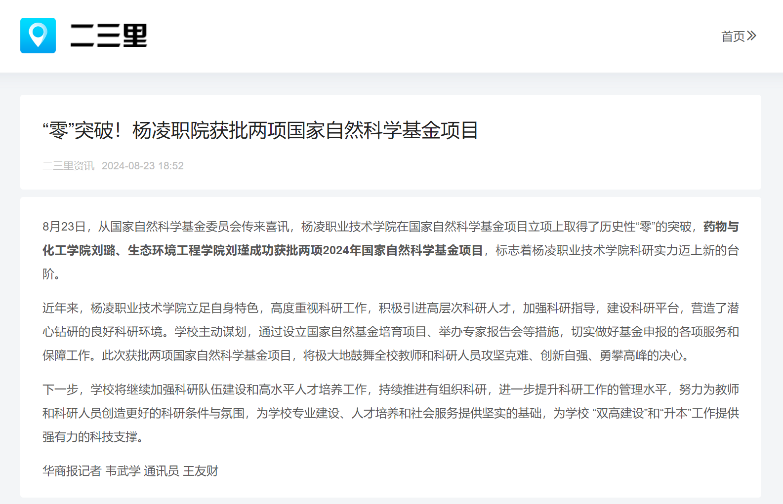 【二三里】“零”突破!杨凌职院获批两项国家自然科学基金项目