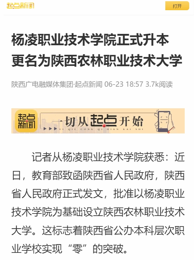 【起点新闻】杨凌职业技术学院正式升本 更名为陕西农林职业技术大学