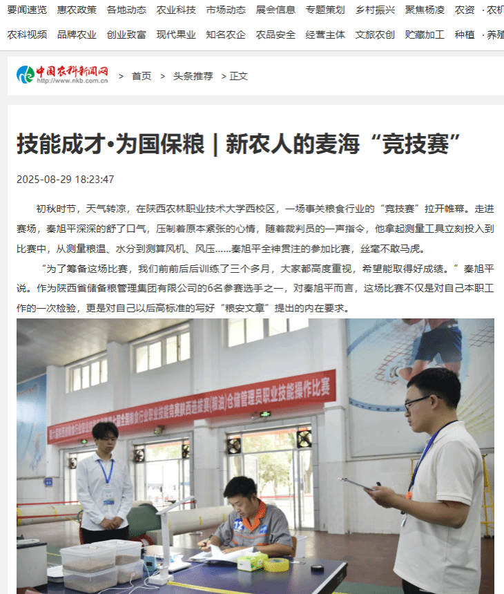 粮食安全是“国之大者”,技能人才是强国之基。习近平总书记多次强调,“要树立大食物观,把饭碗牢牢端在自己手中”。新农人作为未来农业发展的希望,更是打好粮食安全“保卫战”的后备军。陕西农林职业技术大学(原杨凌职业技术学院)校长仲伟周在开幕式致辞中介绍,来自全省的参赛选手同台竞技、切磋技艺,这既是一场技能的盛宴,更是一次经验的交流、初心的凝聚。通过大赛的磨砺,必将涌现出一批技术能手、岗位标兵,为陕西粮储行业注入新的活力。