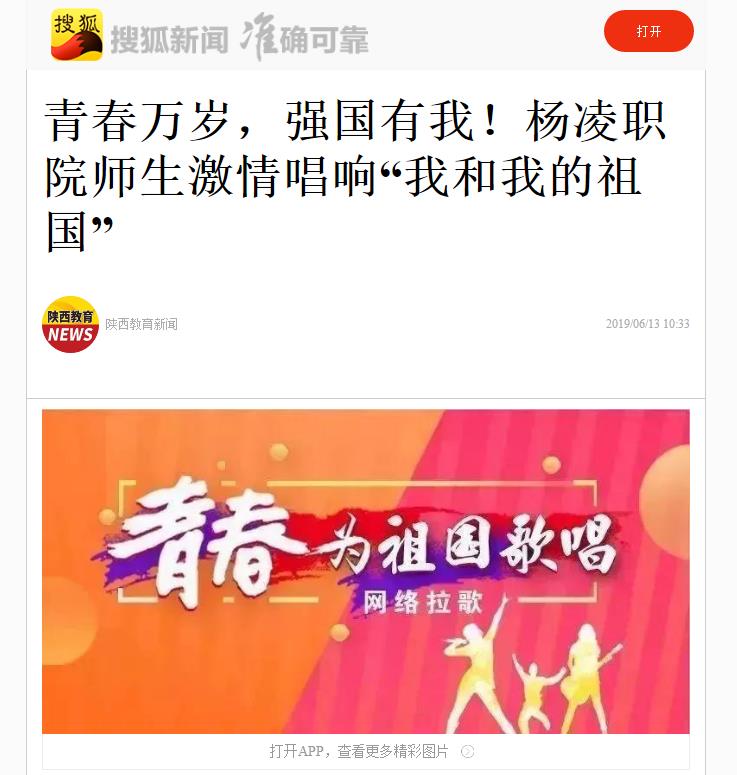 【搜狐新闻】青春万岁,强国有我!杨凌职院师生激情唱响“我和我的祖国”