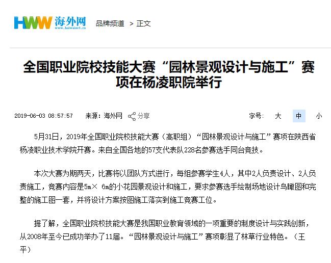 上一条:【杨凌发布】2019年全国职业院校技能大赛 (高职组)“园林景观设计与施工”赛项在杨凌职院举行