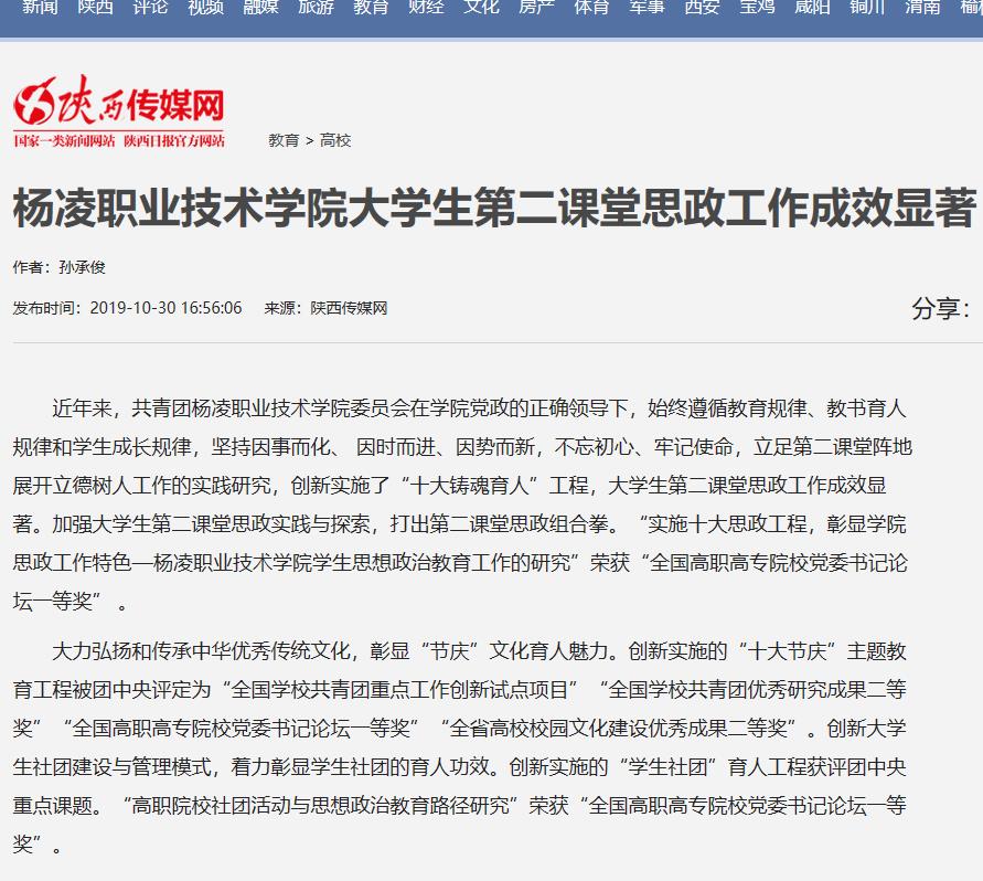 【陕西传媒网】杨凌职业技术学院大学生第二课堂思政工作成效显著