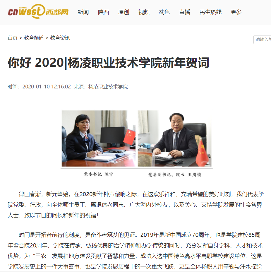 【西部网】你好 2020|杨凌职业技术学院新年贺词