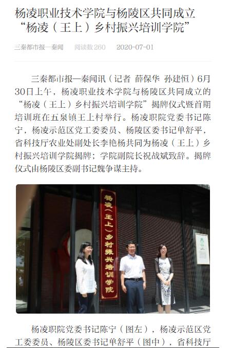 【三秦网】杨凌职业学院与杨陵区共同成立“杨凌(王上)乡村振兴培训学院”
