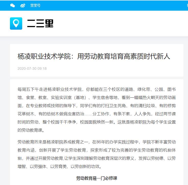 【二三里】杨凌职业技术学院:用劳动教育培育高素质时代新人