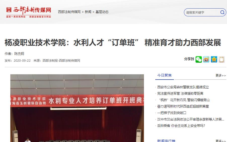 【西部法制传媒网】杨凌职业技术学院:水利人才“订单班” 精准育才助力西部发展