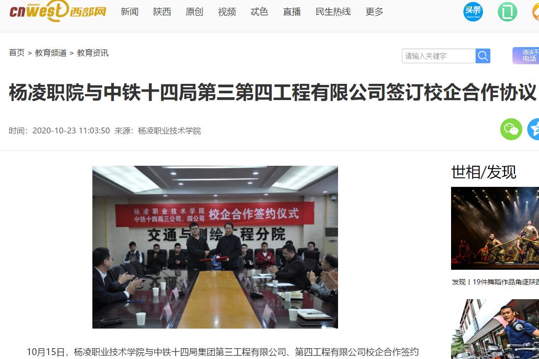 【西部网】杨凌职院与中铁十四局第三第四工程有限公司签订校企合作协议