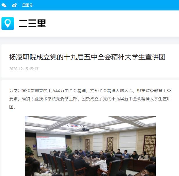 【二三里】杨凌职业技术学院成立党的十九届五中全会精神大学生宣讲团