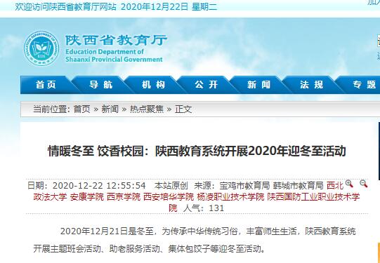 杨凌职业技术学院党委书记陈宁与学生品饺子、过冬至