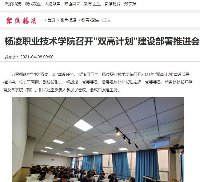 【中国农科新闻网】杨凌职业技术学院召开“双高计划”建设部署推进会