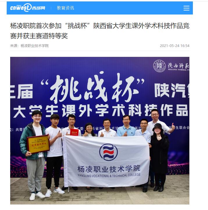 【西部网】杨凌职院首次参加“挑战杯”陕西省大学生课外学术科技作品竞赛并获主赛道特等奖