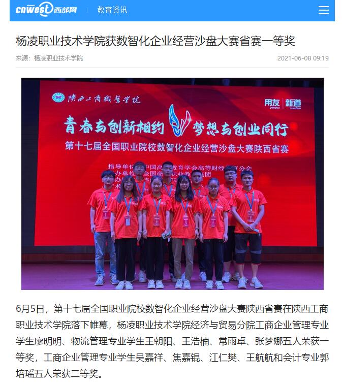 【西部网】杨凌职业技术学院获数智化企业经营沙盘大赛省赛一等奖