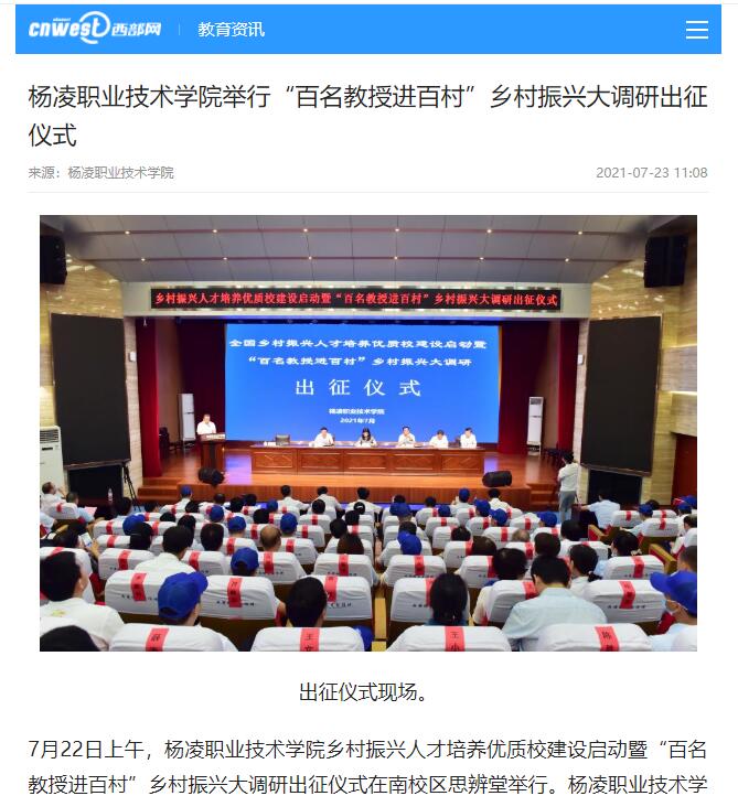【西部网】杨凌职业技术学院举行“百名教授进百村”乡村振兴大调研出征仪式