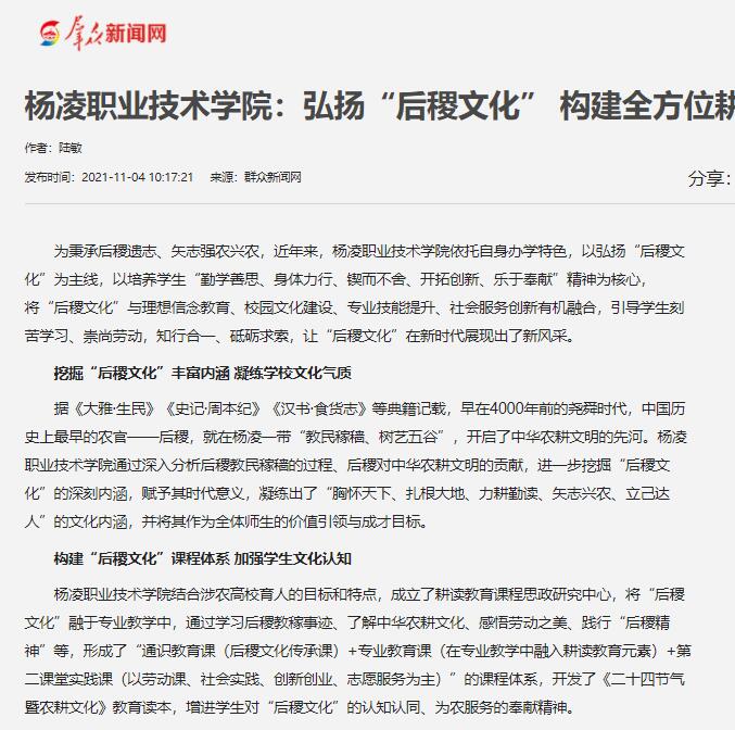 【群众新闻网】杨凌职业技术学院:弘扬“后稷文化” 构建全方位耕读教育体系