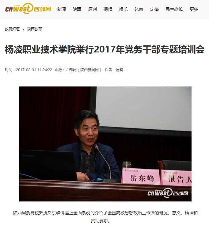 【西部网】杨凌职业技术学院举行2017年党务干部专题培训会
