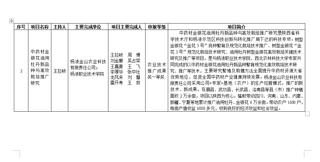 杨凌职业技术学院申报2019-2021年度全国农牧渔业丰收奖推荐的公示