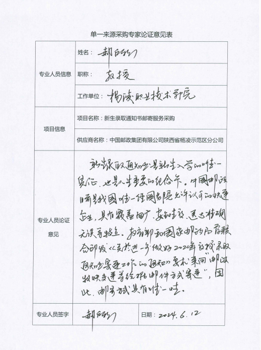 杨凌职业技术学院新生录取通知书邮寄服务项目,根据项目立项相关资料及专家论证意见,拟采用单一来源采购方式,该项目拟由中国邮政集团有限公司陕西省杨凌示范区分公司承担。现将有关情况向潜在的供应商广泛征求意见。