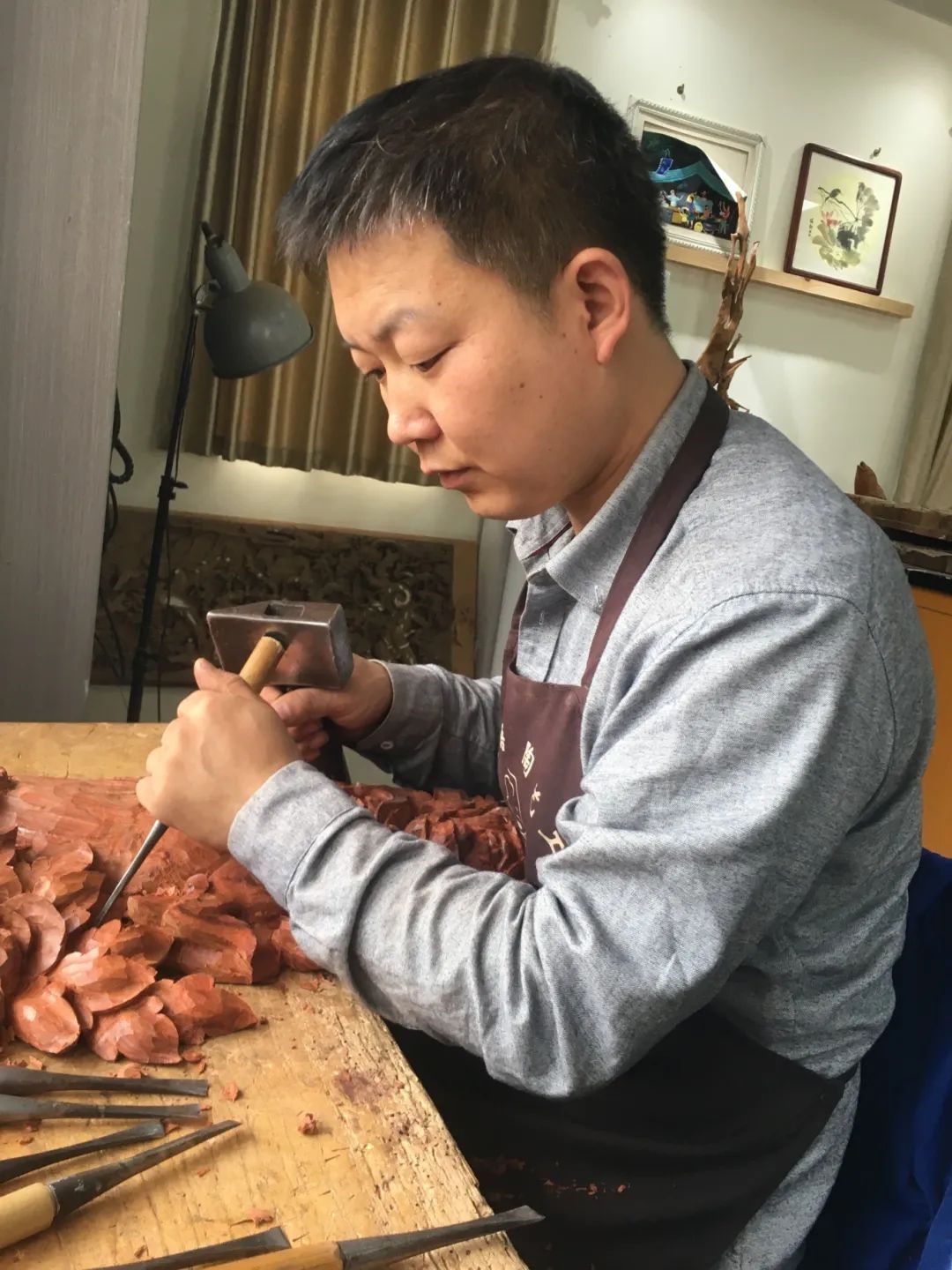 凭借着对木雕艺术的热爱与执着,吴文军从一名小学徒逐步成长为高级工艺美术师。在这十余年的岁月里,他不仅展露了非凡的天赋,更以持之以恒的工匠精神,在每日的雕琢工作中不断坚守与突破。