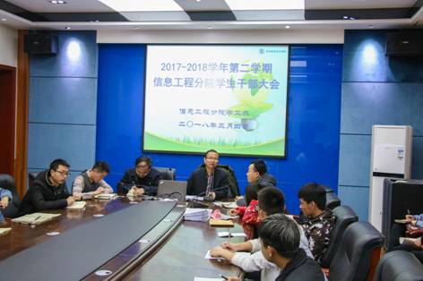 为帮助返校同学及时调整状态,安排新学期各项事宜,统筹部署新学期总体学生工作安排,3月4日,信息工程分院在秦风楼四楼会议室召开了新学期学生干部大会。