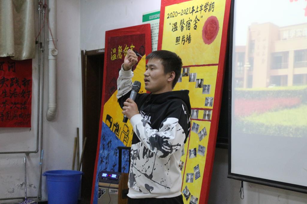伴随着一段精心剪辑的“温馨宿舍”短片,本次颁奖大会拉开帷幕。学生工作办公室主任吴高潮进行了典礼致辞,他指出:要扫天下要先扫一屋,温馨寝室建设,培养了学生良好生活习惯,“百舸争流千帆竟,乘风破浪正当时”,建设先进的“寝室文化”,努力践行劳动教育,是信息工程分院学子孜孜以求的目标。辅导员张齐老师为获得“温馨宿舍”的代表进行了颁奖,这些宿舍均是经生活部认真筛选,周周评比,积分靠前的宿舍。获得表彰的男、女宿舍代表分别上台发了言,讲述他们对建设“温馨寝室”的感想;大家纷纷为代表鼓掌,榜样的力量显露无疑。