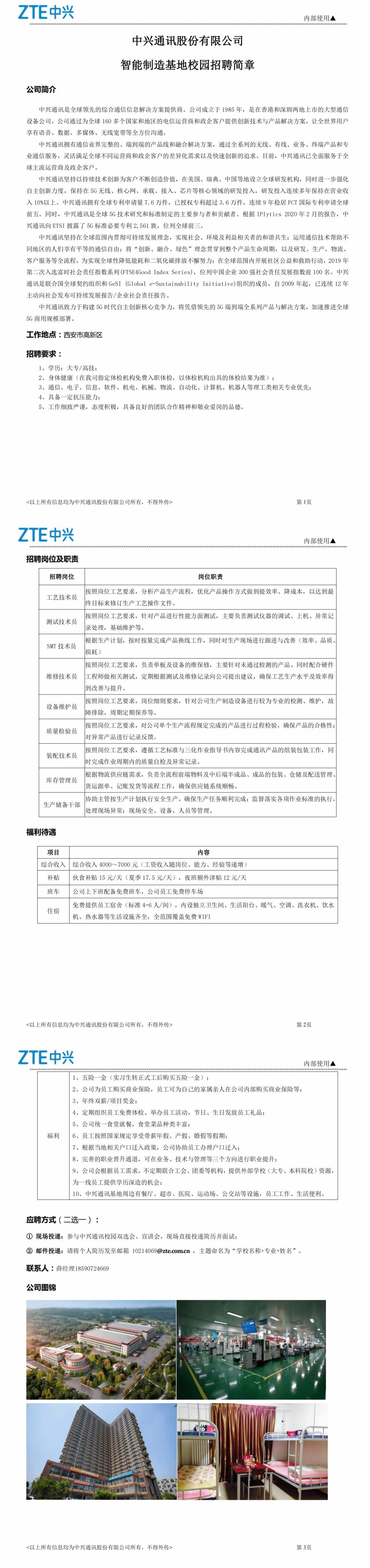 【招聘信息】中兴通讯股份有限公司智能制造基地校园招聘简章