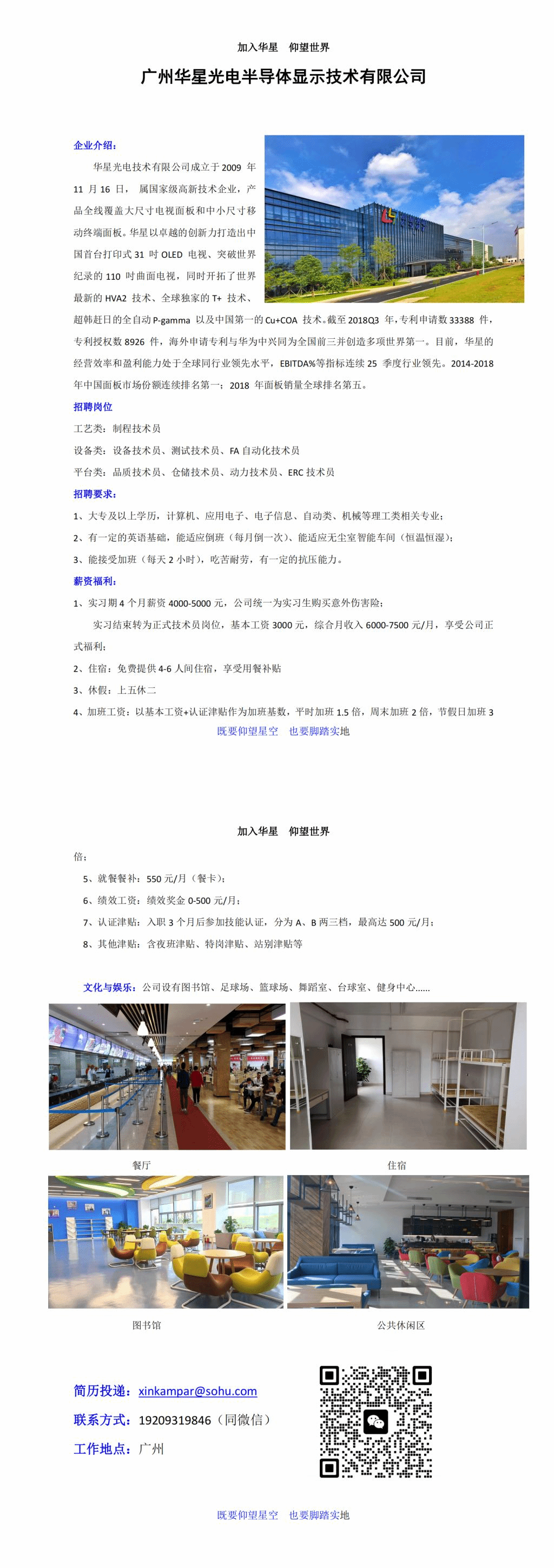 【招聘信息】广州华星光电半导体显示技术有限公司招聘简章
