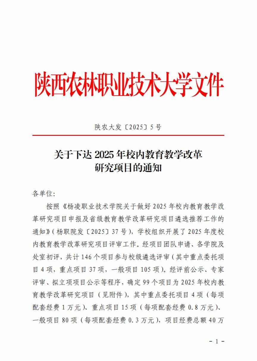 7月8日,学校发布了《关于下达2025年校内教育教学改革研究项目的通知》(陕农大发〔2025〕5号),信息工程学院共有7个项目成功获批立项,其中重点项目2项、一般项目5项,展现了学院在教育教学改革领域的积极探索与创新成果。