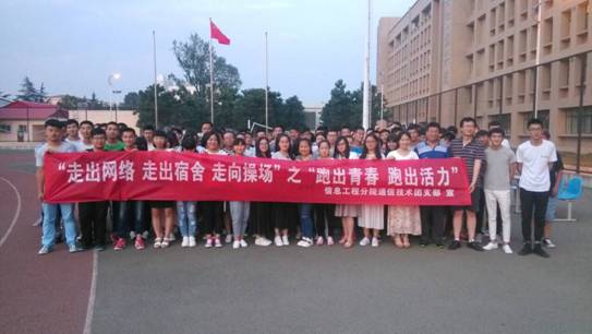 2016年6月7日19:30分,信息工程分院通信技术15004班、15005班及15006班团支部联合举办的“走下网络、走出宿舍、走向操场”之“跑出青春,跑出活力”主题跑步活动在南校区操场来开帷幕。