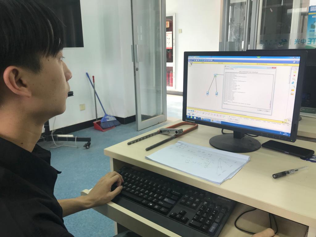2021年7月5日上午8:30,我院通信技术专业2020级学生在数据通信实训室(NOD-502)开展了《交换机技术及应用》课程改革考试,本次考试共设90分钟,其中包括笔试、实操、仿真实践三部分考核内容。